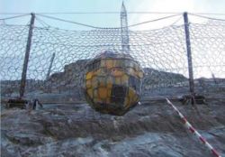 渓流に設置する土石流および流木の捕捉を目的とした柔構造の土石流・流木捕捉工であり、土石流荷重作用時にリングネットとエネルギー吸収装置のブレーキリングが変形することで大きな衝撃エネルギーを吸収できる柔構造物工法である。