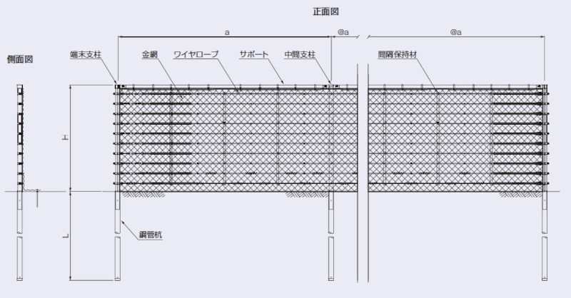 | 防護柵設置工|杭式落石防護柵/鋼管型落石防護柵 S・シールド/TSガードフェンス |