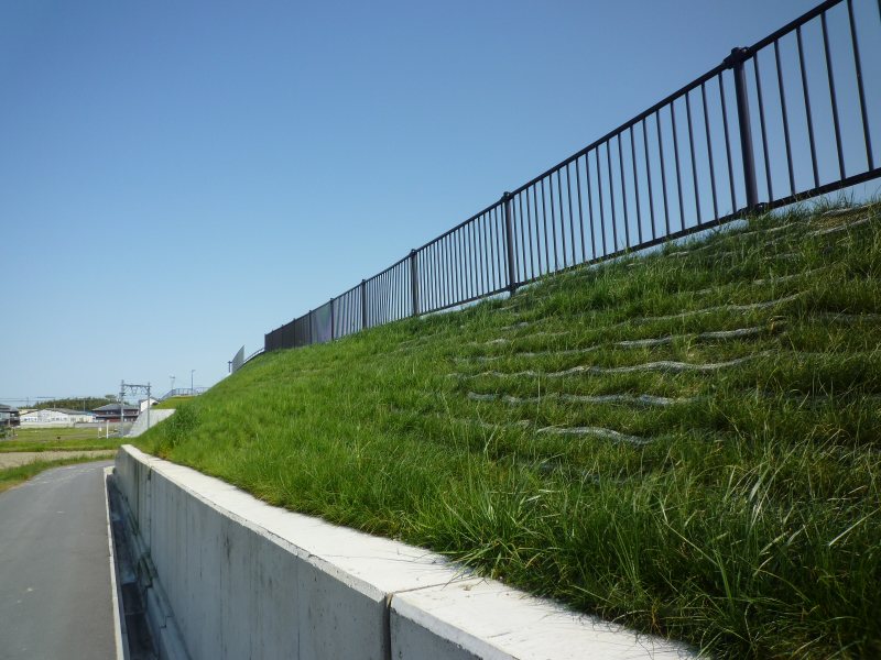 「リトマスマット ブルー」は、アルカリ物を混合して締め固められた植生の成立が困難な法面を、特殊な中和剤と微生物資材の活用により緑化品質を確保できる工法である。従来は植生基材吹付工で対応してきたが、本技術の植生マットを施工することで工程と経済性を向上させることができる。