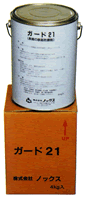 特殊変性エポキシ塗料で長期の防錆効果がある。鉄筋とコンクリートとの付着性を妨げない。ガード21はサラッとした速乾性の防錆剤で、塗布しやすく、塗布後の作業も容易。護岸工事等の厳しい環境下での防錆に適する。