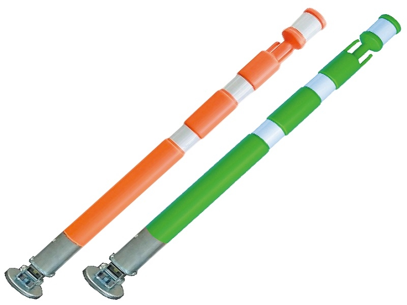 「パッチンスタンド」は底部マグネットにより敷鉄板に磁力固定し、車線誘導・区画整理を行う保安製品である。従来は非接着式のロードコーンで対応していた。パッチンスタンドの活用により、設置スペースの削減と磁力固定による振動等外的要因の位置ずれが起こらないため、施工性の向上が図られる。