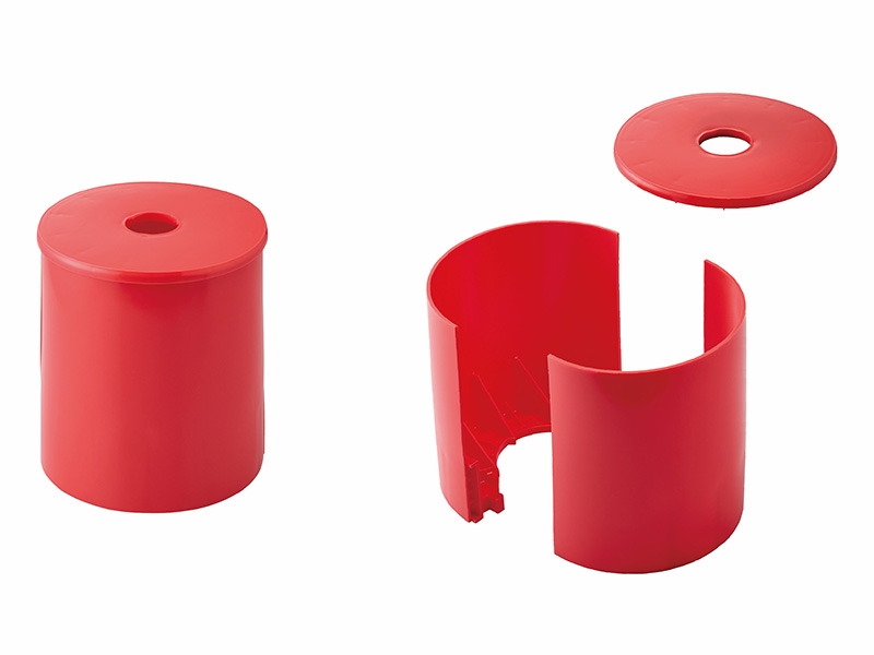 「再利用式樹脂製ボイドスリーブ」は、コンクリート打設時における配管用の開口を行うための樹脂製ボイドスリーブである。従来は紙製を使用していた。「再利用式樹脂製ボイドスリーブ」の活用により、再利用による廃棄物の削減および分割式部材による省スペース保管が可能であり、地球環境への影響抑制と施工性の向上が図れる。