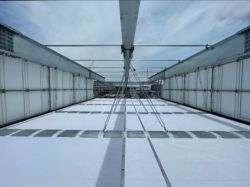 「TOBISLIDE(トビスライド)」は、中小規模鋼橋や横断歩道橋の仮設工事に用いる「作業床と防護柵(朝顔)が一体化したパネル式ユニットシステム吊り足場」である。はらおこしが不要で作業床に段差がなく、移動と作業のしやすいチェーンピッチを実現。2mと3mのPVC製の防謹柵を組み合わせて、高さ6mの施工も可能。更に、採光性と防音性、耐風性を有している。軽量で扱いやすく、経済性・品質・施工性・周辺環境の向上と設置・撤去工程の短縮が期待できる。