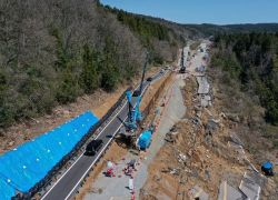ホーシンの「スーパーSS ジャッキ」は、地上からの設置・撤去が簡単に行え、厚生労働省が土砂崩壊災害を防止するためのガイドラインとして策定した土留先行工法に準拠した安全かつ迅速な作業が可能で、ギア式のため水圧式のようなポンプの排水処理が不要で、環境にやさしい製品である。