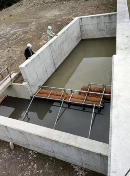 「シードログフィルター」は、土工事で発生する濁水を、モリンガ種子入りの天然ヤシ繊維フィルターで処理する工法で、従来はフィルターを設けない沈砂池工法で対応していた。本技術の活用により、従来工法よりも濁度が低減され、周辺環境への影響の抑制、品質の向上が図れる。