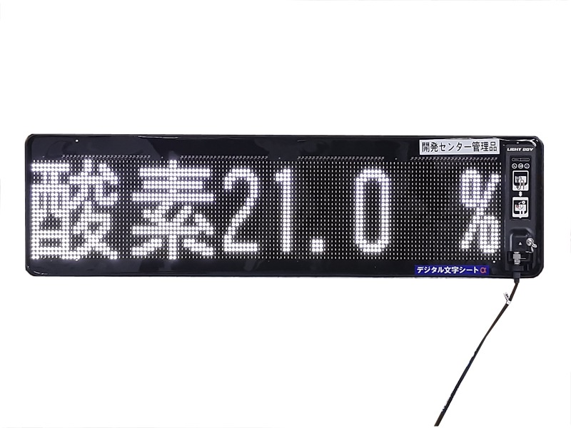 Wi-Fi、RS-232C、接点入力による制御が可能な軽量・薄型のLED表示器。環境や状況に合わせて表示内容をスマートフォン、タブレットから変更できる。外部機器との連動やセンサーで計測したライブデータの表示も可能なため、現場に必要な情報の表示や注意喚起を行い、現場の品質向上につなげることができる。また、柔らかくマグネット内蔵のため金属部の曲面にも設置可能。