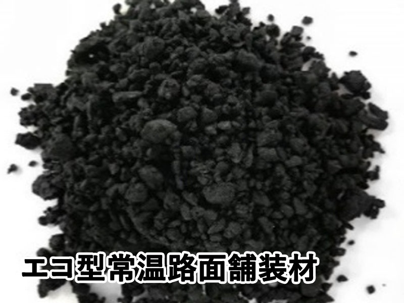 エコ型常温路面舗装材は、路面舗装工事に用いる舗装材に廃材を再利用したブチルゴム合材を用いた技術である。従来は加熱アスファルト系混合物を用いていた。本技術の活用により、常温の転圧により冷却時間なく道路開放が可能になり、工程短縮が図れる。