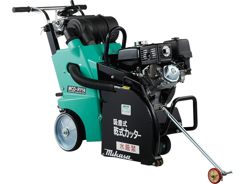 「吸じん式 乾式コンクリートカッター」は、水を使用しない乾式切削方式で、切削粉をスライド式ダストボックスに回収する。 回収した切削粉は、ダストボックス内のビニール袋に入るため、手軽にリサイクル処理が行える。適合モデル:MCD-RY14HS