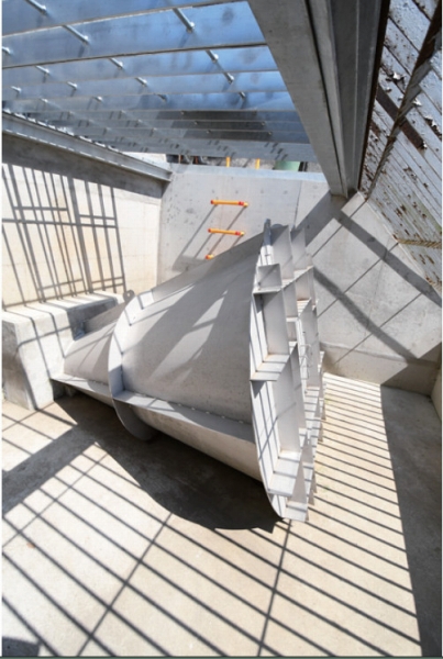 ボルテックスバルブは、雨水貯留施設の貯留機能を最大20%向上させる、無動力型の排水制御装置である。装置内に発生する渦流を利用して流量を制御する。水位が低い場合は渦流が発生せず自然に排出されるが、水位が一定以上に達すると装置内で強い渦流を形成し、許容放流量を超えることなく安定的に流量を抑制する。電力や機械駆動を必要としないシンプルな構造のため、維持管理が容易で故障リスクも低減され、長期的な運用コストの削減に寄与する。また、流出口が大きく閉塞しにくい構造のため、異物混入時にも安定した排水性能を確保できる。都市部の浸水対策や既設施設の機能向上に、有効に活用できる。