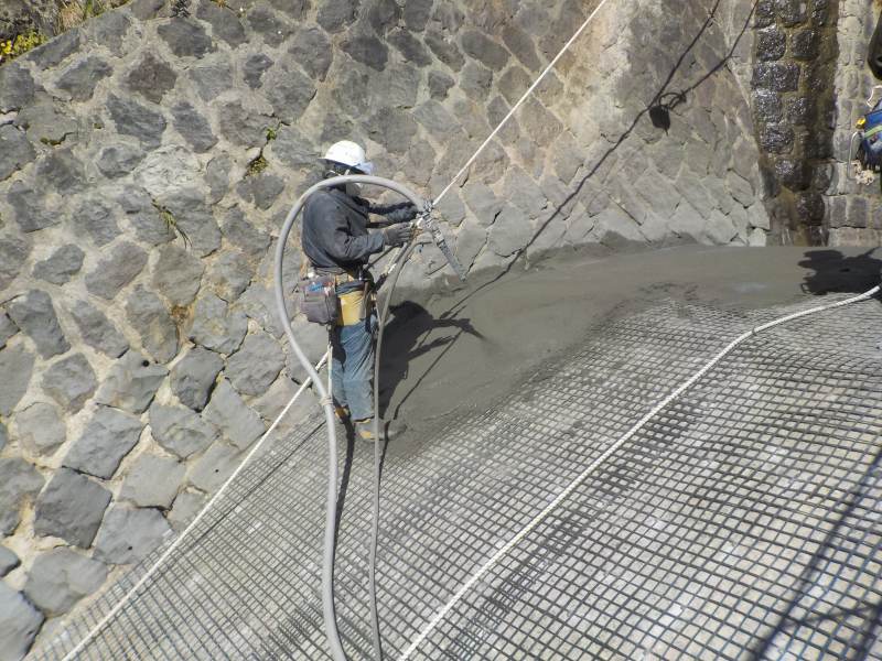 「N・Sグリッド工法」は、CFRPグリッドとフライアッシュ(10%超)入りのポリマーセメントモルタルでコンクリート構造物を補修・補強する技術である。従来の補強鉄筋増厚工法との比較では、グリッドの軽量化が図れるとともにモルタルの打設厚を薄くできる。さらにリサイクルカーボンファイバーを採用することにより、炭酸ガス発生量を通常品より1/8に減らすことができる。