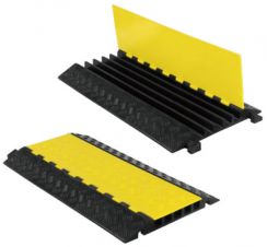 仮設の工事現場や工場内に引き込む各種ケーブルや電線、ホースを車両や歩行者から保護する、耐久性に優れた強化型ケープルプロテクター。 従来は施工現場でコンパネを細工したり、溝を掘って敷鉄板を被せるなどしていたが、本製品に収容するだけで手軽にケーブルを保護でき、工事が不要になる。