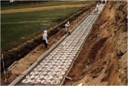 「エア・ブロック」は、プロテクター自体の耐久性が高いだけでなく、工事看板の保護性もあり損耗を軽減できる。一体式ではないため破損部分のみの交換も容易で低コスト。また、完工後は別の看板への使い回しも可能。前面と側面をカバーするため看板の脚に干渉せず、きれいに畳める。