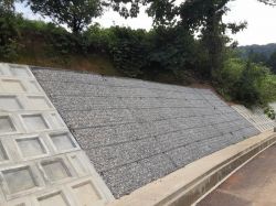 「砕石かご20」は、前面網の網目を24mm×100mmとすることで、全国的に流通している20~40mmの単粒度砕石を内張材無しで利用可能とし、施工性の向上を図った製品である。本体金網に亜鉛アルミ合金めっきを採用することで、従来技術の「ふとんかご」と比較して耐久性が向上し、ライフサイクルコストの縮減が図られる。また、本体に自立性のあるU字型の溶接金網を採用することで、組立工程が簡素化し、施工性が大幅に向上した。