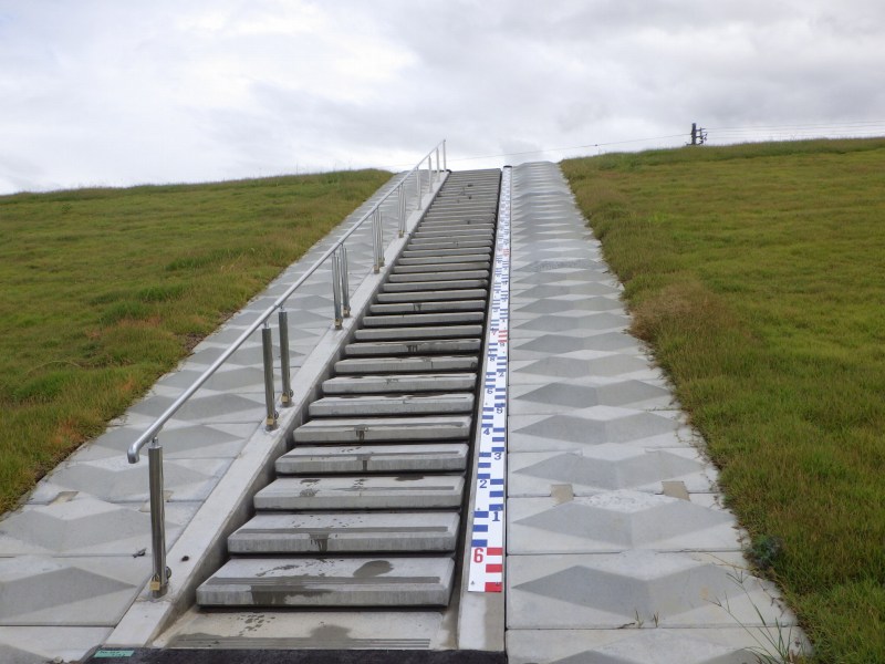 「量水標(Heat式)」は、両サイドを裏面側に折り返した量水標であり、従来は折り返しのない平板型量水標であった。量水標(Heat式)の活用により、曲げ剛性が向上し、不陸面への施工性の向上、施工費の縮減、耐久性の向上が期待できる。