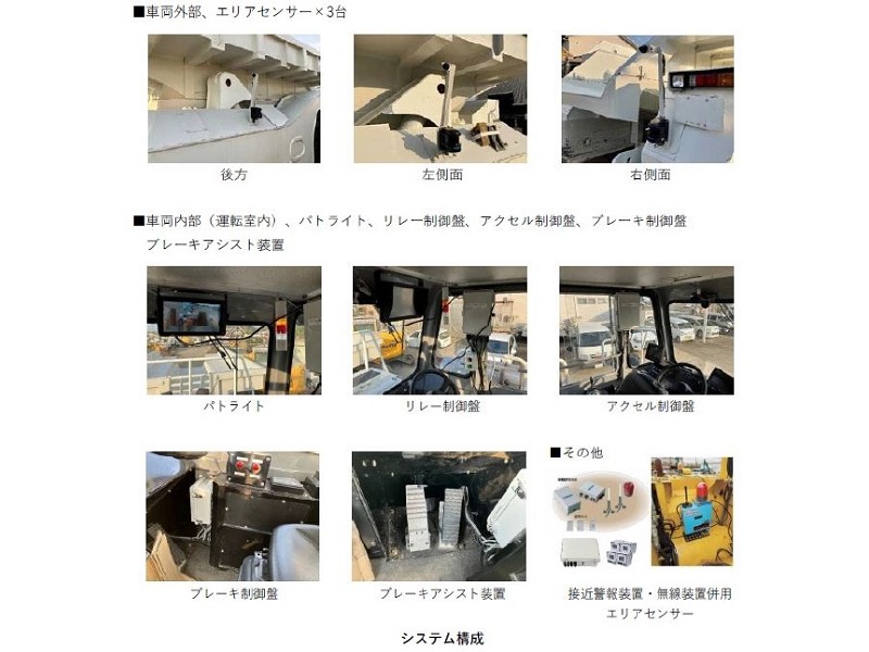 「セントル安全通行システム」は、エリアセンサー検知で車両が減速エリアに入ったときは自動速度制限、接触可能性エリアに入ったときに自動ブレーキ可能なシステム技術であり、従来はコース誘導用のプラチェーンの目視確認による運転操作であった。本技術の活用により施工性、安全性向上が期待できる
