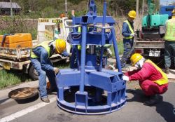 「エアハート工法」は、東日本大震災による下水復旧工事において開発された簡易水替工法であり、効率的かつ衛生的で管理が簡単という特長を持つ。動力源はコンプレッサーを使用し、機材は特殊プラグとホースのみのため設置、撤去が短時間(10~20分程度)で完了する。上流人孔の既設管に特殊止水栓を設置し、管きょ内をポンプピットとするため、水替延長を短縮することができ、歩行者や地域住民への安全確保や影響を最小限に抑えることを可能とする。