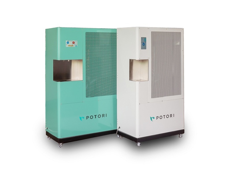 「ぽとり」は、フィルターや熱交換器を用いて空気から飲み水にも適合する工事用水を生成する機械で、従来は給水車で対応していた。ぽとりの活用により、給水所から水を運搬する労力と時間が不要となるため、施工性の向上および工程の短縮が図れる。