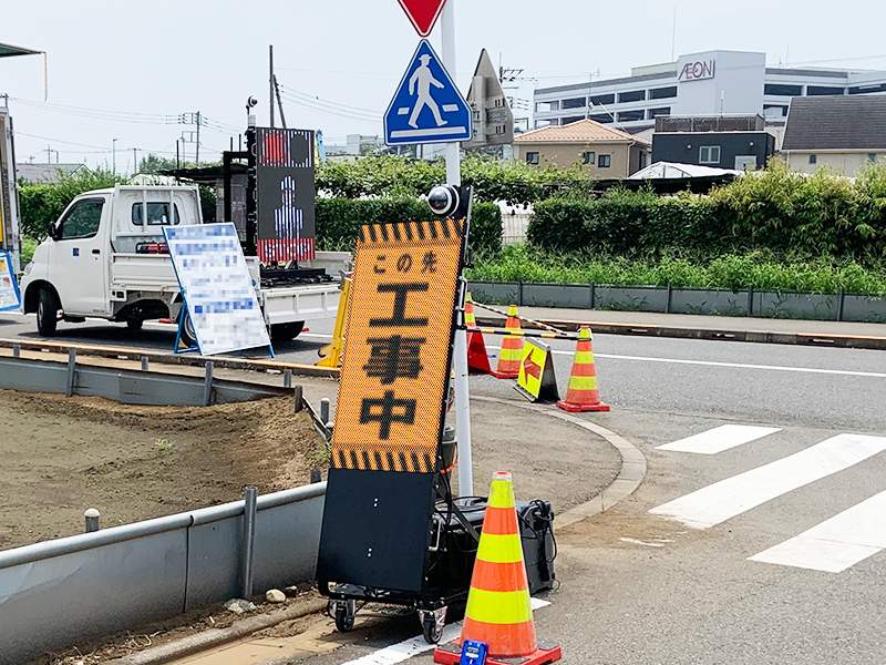「KB-eye for 交通誘導警備」は、片側交互通行規制においてAIシステムを設置し、通行車両に注意喚起・誘導を行うもので、従来は交通誘導警備員による誘導で対応していた。本技術により的確な判断による品質の向上と交通誘導警備員の省人化が図れる。