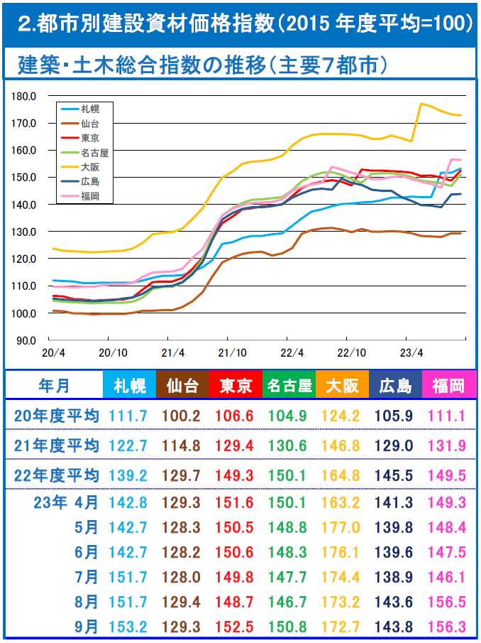 都市別建設資材価格指数