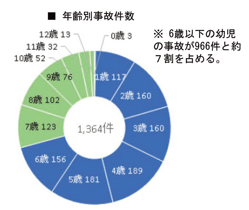 図-3が示すように、最近の公園遊具による事故の約70%は6歳以下の幼児・乳幼児となっている。