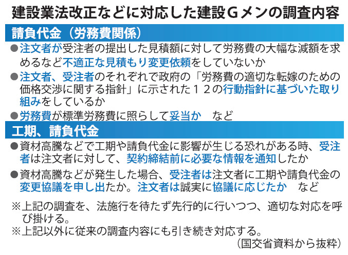この規定に基づき、現場レベルの実地調査に当たる「建設Gメン」が違反の端緒情報をつかむ動きを真正面から展開する。