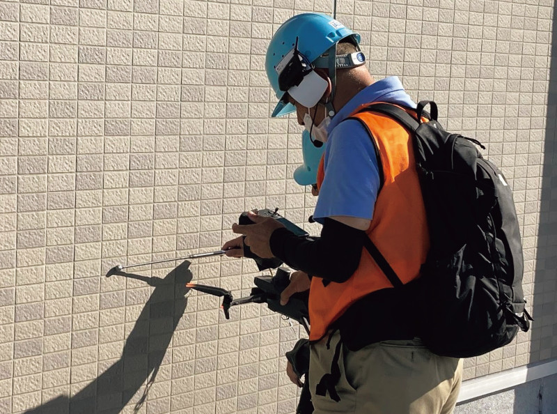 「外壁調査ベストミックス法」は、将来のドローン自動飛行による建物調査の人員削減や日常点検のデジタル化などを想定して実施したものである。