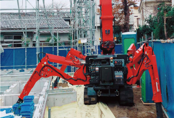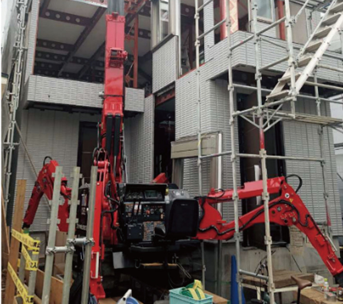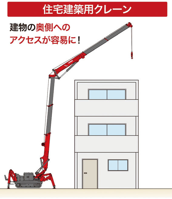 住宅建築の耐震化や土地の有効活用に当たり、鉄筋コンクリート造の新築・リフォーム施工のニーズが高まっている一方、都市圏や駅近の利便性の高い住宅密集地や狭小地には、従来のトラック搭載型クレーンやラフテレーンクレーンなど車幅や機体の大きいクレーン車が入り込むことが困難なため、工期の長期化や、それに伴う輸送費・人件費の増加、周辺道路を通行止めにせざるを得ない課題が発生している。
