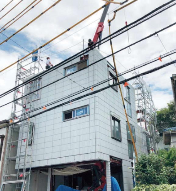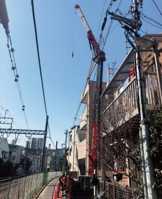 こうした狭小地施工現場におけるクレーンの技術について紹介する。