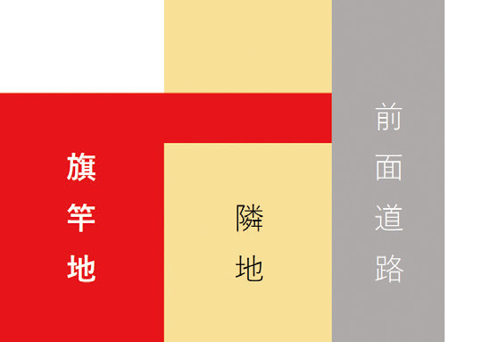 特に、幅が2mに満たない接道(図-1)や、間口が2m程度の旗竿敷地(図-2)も、これまでは建築資材の搬出入が困難とされてきた。