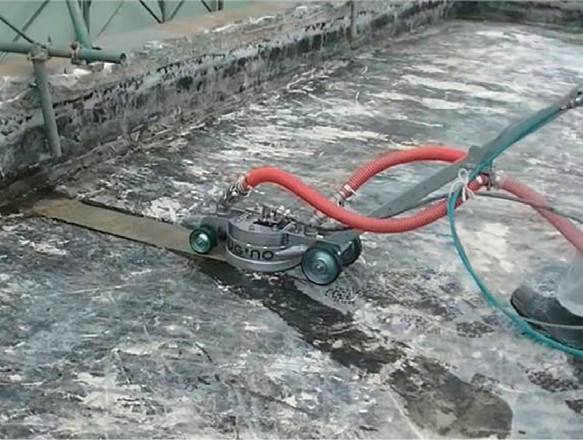 本工法では、専用の機械を用いて飛散を最小限に抑え、安全かつ確実に除去することができる。