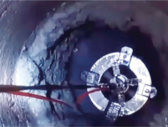 その噴射した超高圧水で、煙突内のアスベストライニング材の湿潤・削り落とし・洗浄を一連の作業で、効率良く安全に除去を行える。