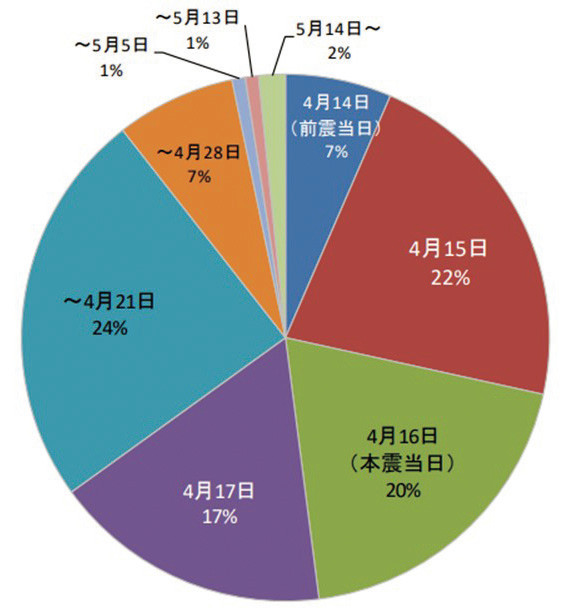 熊本地震で仮設トイレが避難所に届いた日を被災者に尋ねたところ、3日以内に到着したのは49%でした(図- 2)。