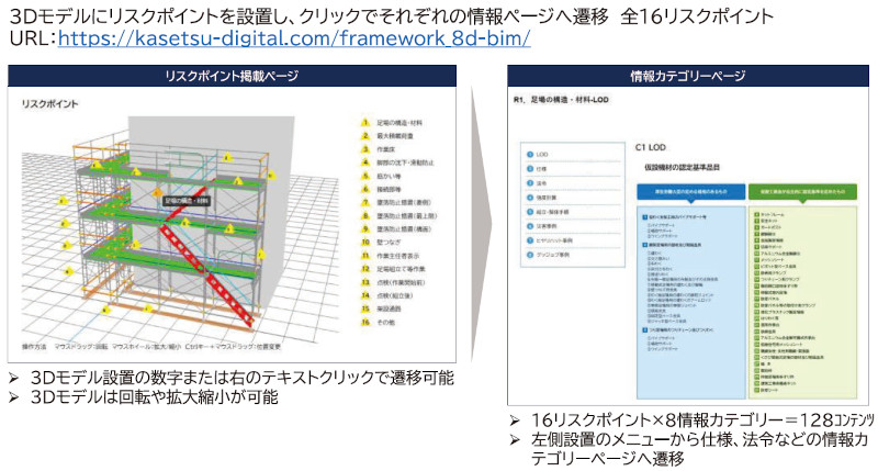 8D- BIMに関しては、手すり先行システム足場編を早々に完成させ、躯体BIMとの連結を図り、足場に関する「KATETOS」の情報を集積し、メタバースとの連結を図る仕組みを検討することとしています。