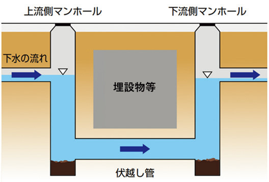 下水道施設には、常時満水である伏越し管きょや、高水位かつ流速が速い管きょなど、既存の調査方法では調査が困難な施設が存在する(図-4)。