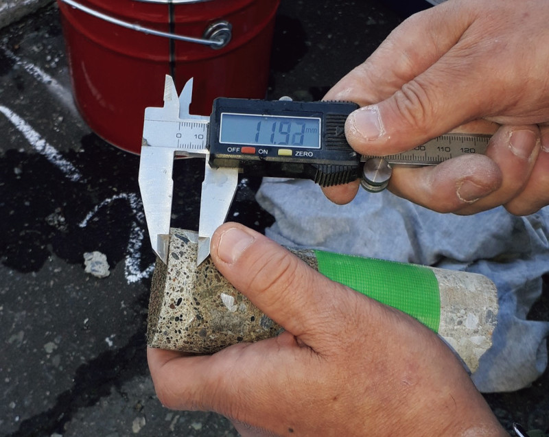 なお、工事において吸水防止層の形成状況を確認するために都度、削孔を行うと構造物に損傷を与え、また、多くの時間と労力が費やされる。
