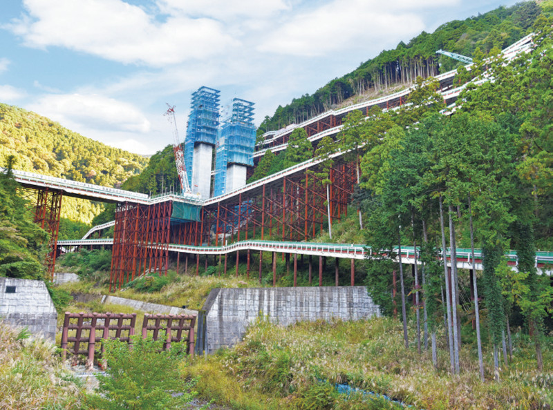 このため高速道路工事では、トンネルと峡谷に架け渡される橋梁が同時並行的に進行する施工要請に応じ、工事用道路を構成する仮橋工が複数の橋梁とトンネル坑口を臨機応変に結び、最短工期で施工を完了できるよう計画される。