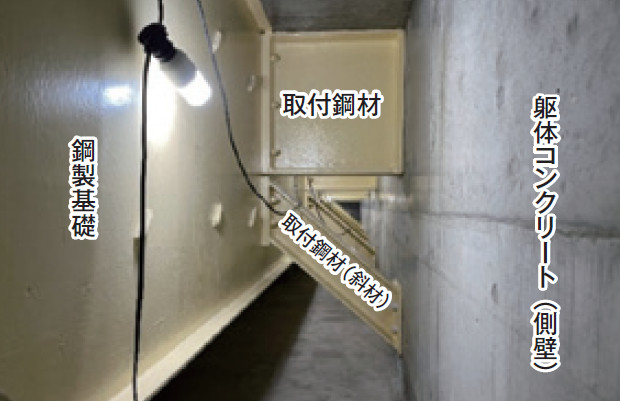 しかし、その後の周辺環境の変化により近隣の地下水位が上昇、鋼製基礎の内部に地下水が流入し、腐食が進行していた。