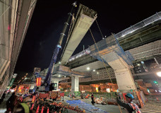 都市部の重交差点直上での橋梁架け替えという難易度の高い工事であったが、綿密な施工計画に基づき、施工上の安全にも徹底した配慮を行い、撤去から架設まで、社会的な影響をいかに小さくするかを念頭に工事を進めた結果、地域の方々のご理解・ご協力を得て、当初の予定からおよそ4カ月前倒しして無事に通行再開できた。