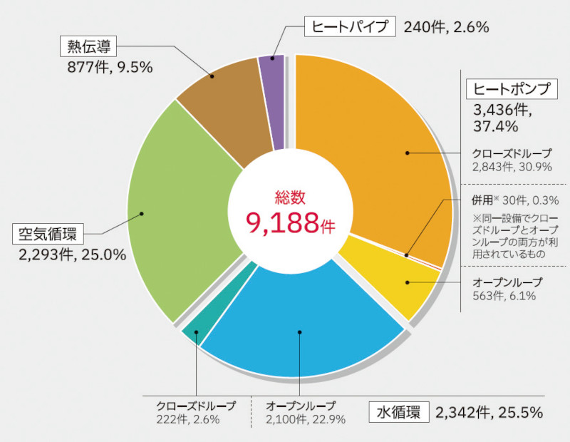 環境省が2010年度から隔年で実施している「地中熱利用状況調査」の最新結果では、国内では2023年度末で9,188件の地中熱設備導入が確認されています(図- 4)。