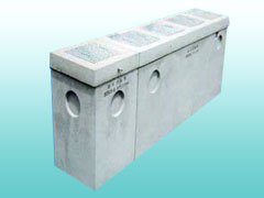 プレキャストコンクリート製の油水分離槽。 施工性・安全性・経済性に優れている。
