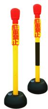 駐車禁止をドライバーに知らせる標識スタンド。ポールの部分が組み立て式で、3つに分かれるため、収納が容易。ポールの転倒を防止するため、台の部分に水を入れることが可能(満水時:3kg)。