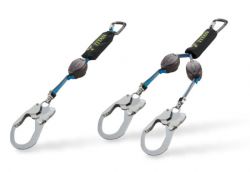 「ハーネス用ランヤード」には、ロック機能付きで落下距離を最短に止める巻取、コンパクトな長さから作業中は必要に応じて伸びる伸縮ストラップ式、軽量で摩擦に強い三つ打ロープのロープ式などをラインアッ...