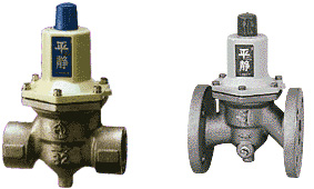 一次側(入口側)の流体圧力より低い二次側(出口側)の流体圧力を 一次側の圧力変化があっても一定に保つ自動調整弁。補助動力を用いず、流体の圧力を利用して作動する自力式圧力調整弁で、 スプリング、ダイヤフラム、またはピストンなどの力の平衡により弁体を自動的に調整する。蒸気用、ガス用、液体用などがある。