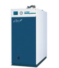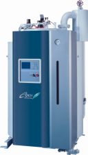 角型・スリムな省スペース設計、多缶設置、台数制御対応の省エネボイラ。正面幅800mmのスリムなボディが特長。