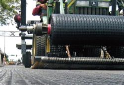 グラスファイバー製のロール状アスファルト舗装用補強材。舗装の新設や切削オー...