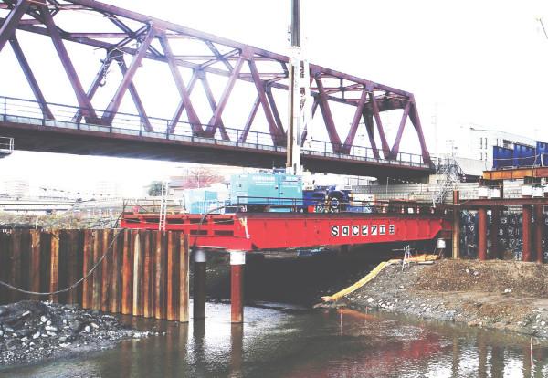 仮桟橋を架設・撤去する場合、従来工法では支持杭に足場を設置する必要があるため、膨大な手間がかかっていた。さらに落下事故の危険が非常に高く、安全性の面でも不安があった。スパイダー工法は、電動ゴン...
