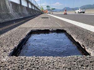 鋼床版橋面舗装の基層部(グースアスファルト舗装)を小規模補修する技術。