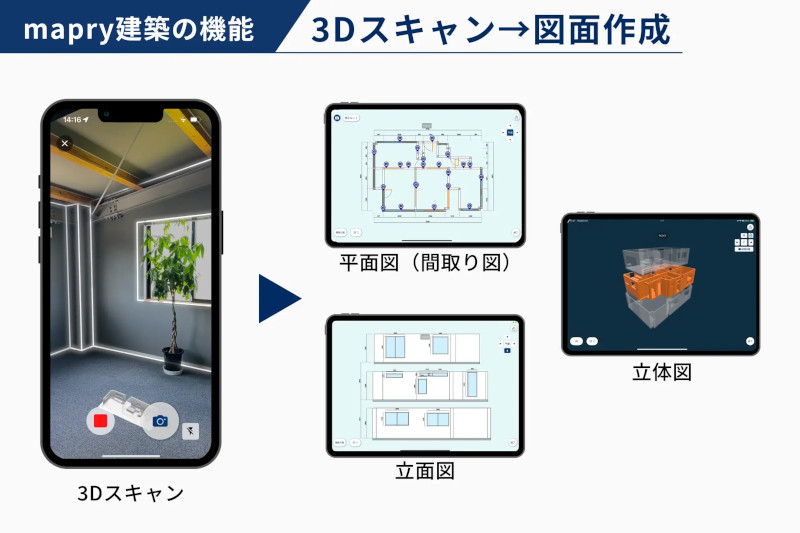 mapry建築は手軽に室内空間をスキャンできる、住宅・建築分野向けのiOSアプリケーションである。