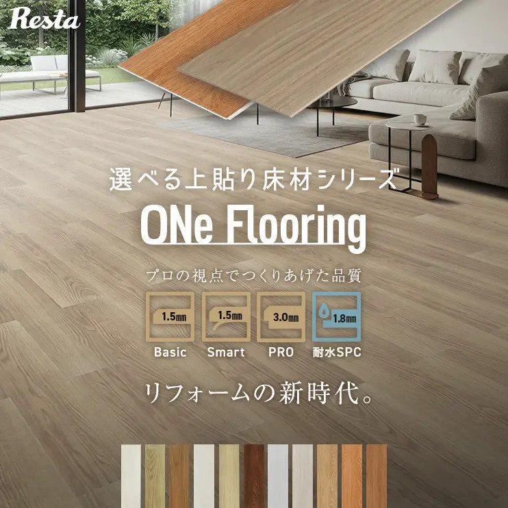 株式会社RESTA(本社:兵庫県神戸市、代表取締役:平井泰志)は、改正建築基準法による上張りリフォーム需要の急増に対応する、厚さ1.5mmからの上貼りリフォーム床材「ONe Flooring(ワンフローリング)」シリーズ全4種を発売する。