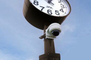 時計と防犯カメラを一体化した、LED内部照明付きアウトドアクロック。